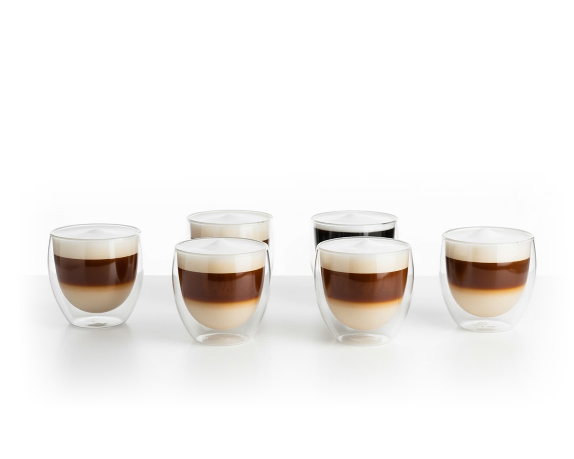 Wir nutzen die Gläser seit einigen Wochen fast täglich. Sie sehen edel aus und halten Espresso oder Ristretto deutlich länger warm. Trotz heissem Inhalt bleiben die Aussenwände angenehm, was sehr komfortabel ist. Für uns eine klare Empfehlung.