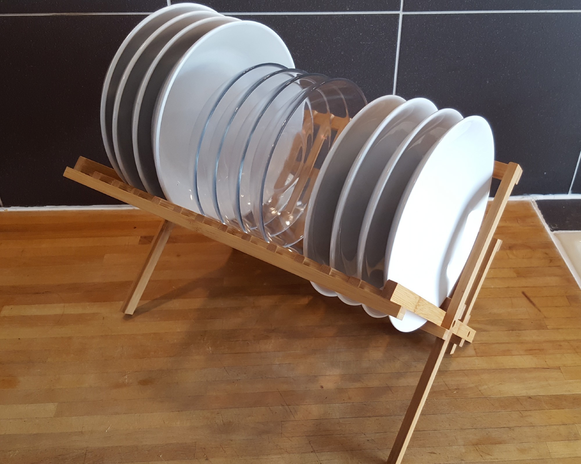 Das Abtropfgestell ist eine echte Erleichterung in der Küche. Es passt perfekt neben unser Waschbecken und nimmt nicht zu viel Platz weg. Besonders gut gefällt uns, dass es zusammenklappbar ist und so leicht verstaut werden kann. Auch optisch macht es etwas her, wirkt schlicht und natürlich. Eine klare Empfehlung.